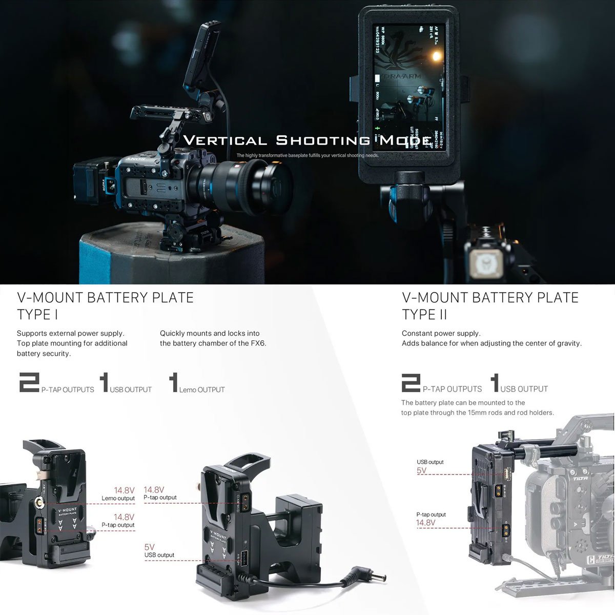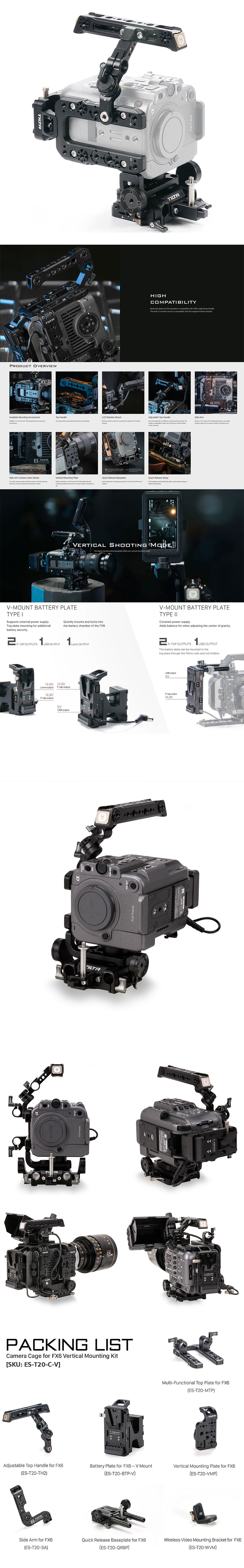 TILTA Camera Cage for Sony FX6 Vertical Mounting Kit [V-Mount]